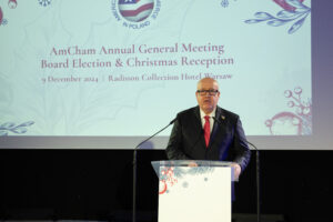 Tony Housh, Chairman of AmCham, warmly welcomed all the guests and presented the Chairman’s Report, accompanies by a recap movie and AmCham Annual Report 2024. Following this, Tomasz Łebkowski from PwC presented the Auditor’s Report.
